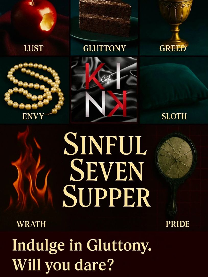 The Sinful Seven Supper is offered only a few times per year as part of Kink Café’s signature immersive programming.